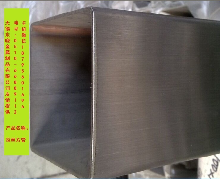 无锡东晓金属制品有限公司可为客户提供优质方管、矩形管。方管又分装饰方管、焊管方管和无缝方管。可以根据不同的使用环境进行选择。对于管材还可以进行一下深加工:拉丝方管、抛光方管、镀钛装饰管等,还可以钻孔、激光切管。拉丝方管东.jpg